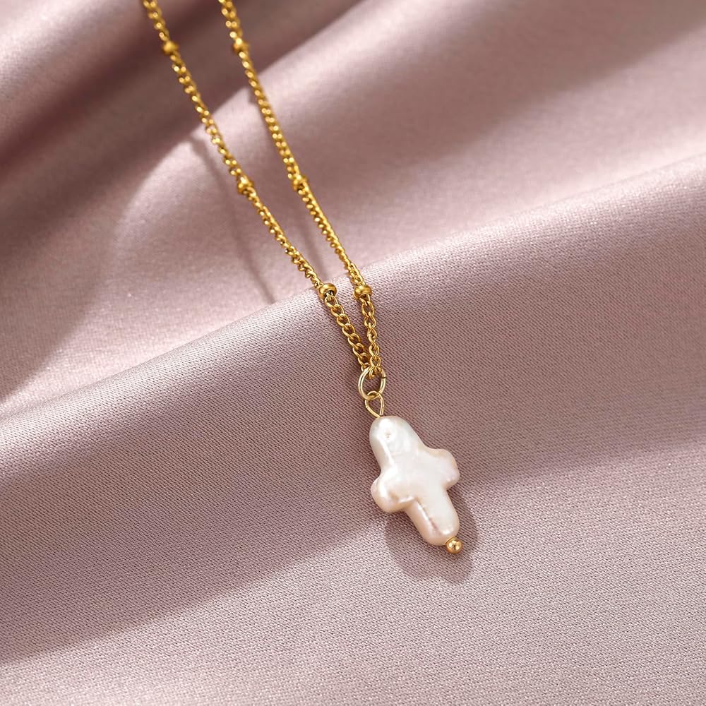 Some jewelry trends come and go, but a few combinations remain eternally elegant. The Freshwater Pearl Cross Necklace with Silver Chain is one of those timeless pairings that perfectly blends grace, purity,