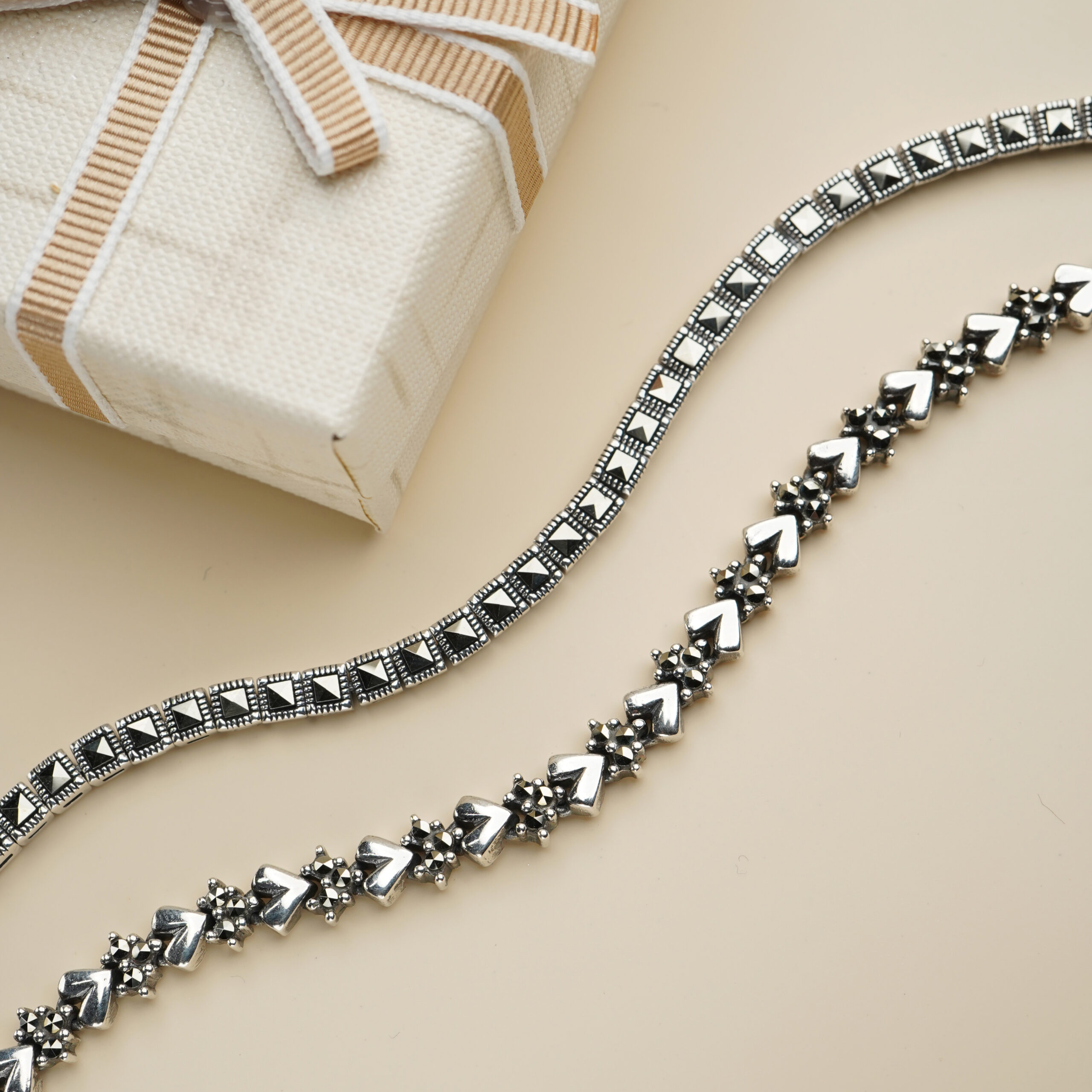 Marcasite adds texture and depth to sculptural designs.
